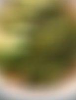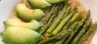 Para el almuerzo una sopa de pasta de trigo, espárragos y aguacate