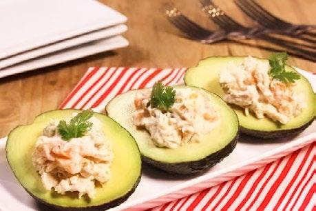 Parte los aguacates a la mitad y retira el hueso. Rellena con la mezcla anterior.