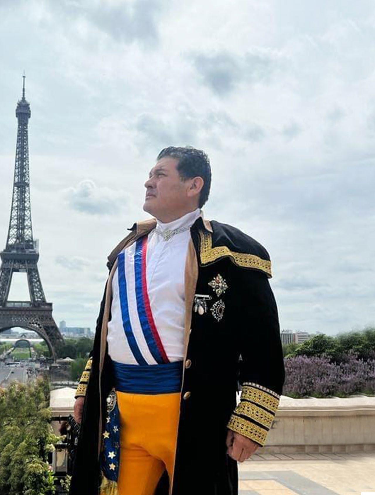 FOTO CORTESIA: JORGE TORRES. El autor con Charros Salamantinos en el Palacio Municipal de Salamanca, Es.