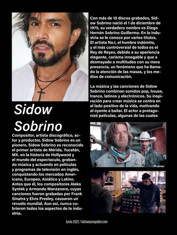 Compositor, artista discográfico, actor y productor, Sidow Sobrino es un pionero. Sidow Sobrino es reconocido el primer artista de Mérida, Yucatán, MX. en la historia de Hollywood y el mundo del espectaculo, grabando música y actuando en películas y programas de televisión en inglés, conquistando los mercados Americano, Europeo, Asiático y Latino. Antes que él, los compositores Aleks Syntek y Armando Manzanero, cuyas canciones fueron grabadas por Frank Sinatra y Elvis Presley, causaron un revuelo mundial. Aun así, nunca cubrieron todos los aspectos de la industria.