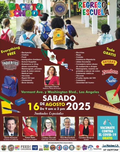 tregar completamente gratis paquetes de útiles escolares y alimentos, una actividad que lleva mucho tiempo realizándose antes de la temporada de estudios. Las familias se benefician con esta ayuda que se da a través de esta actividad: “De regreso a la escuela”, el domingo 16 a partir de las 9 de la mañana en la esquina de Vermont y Washington.
