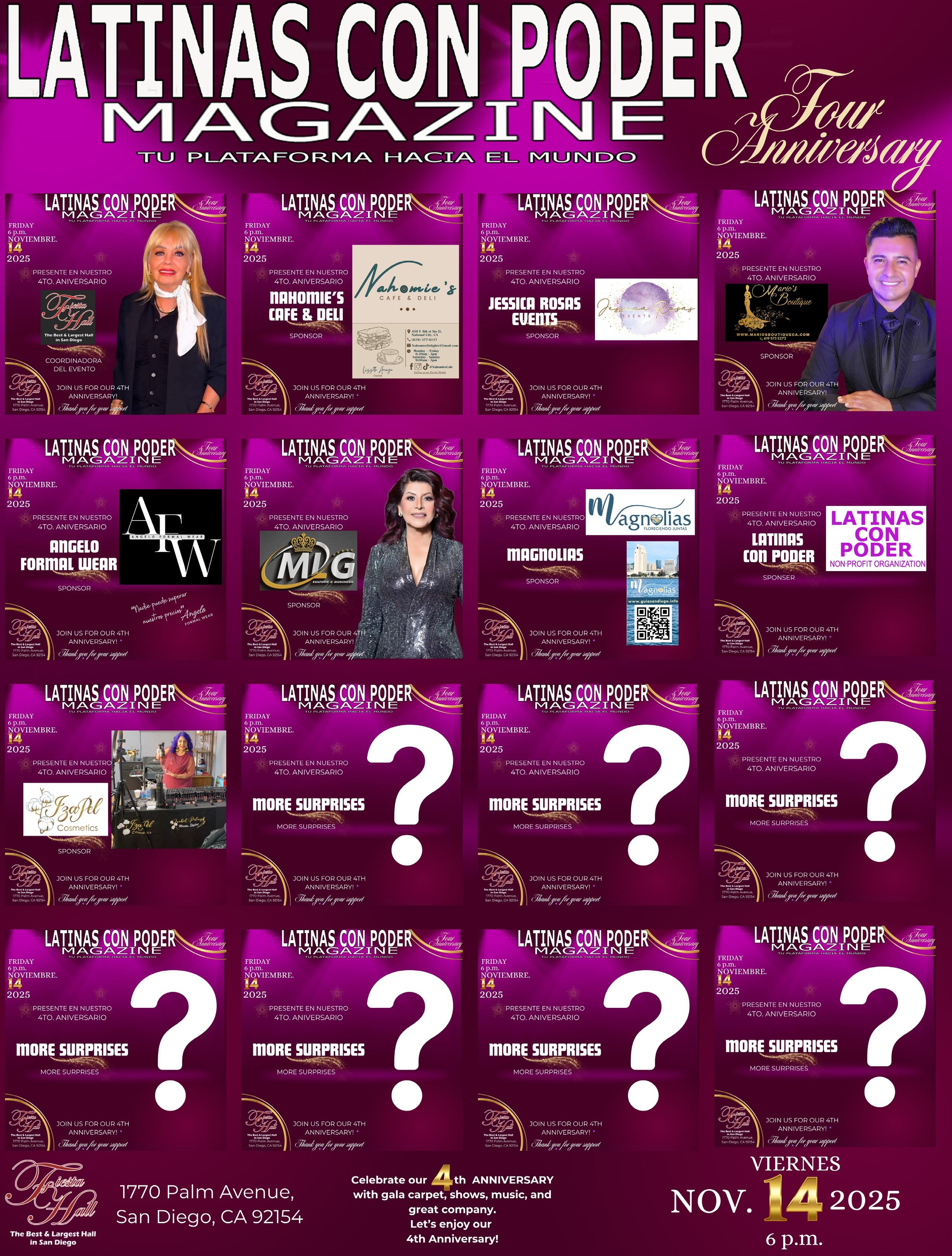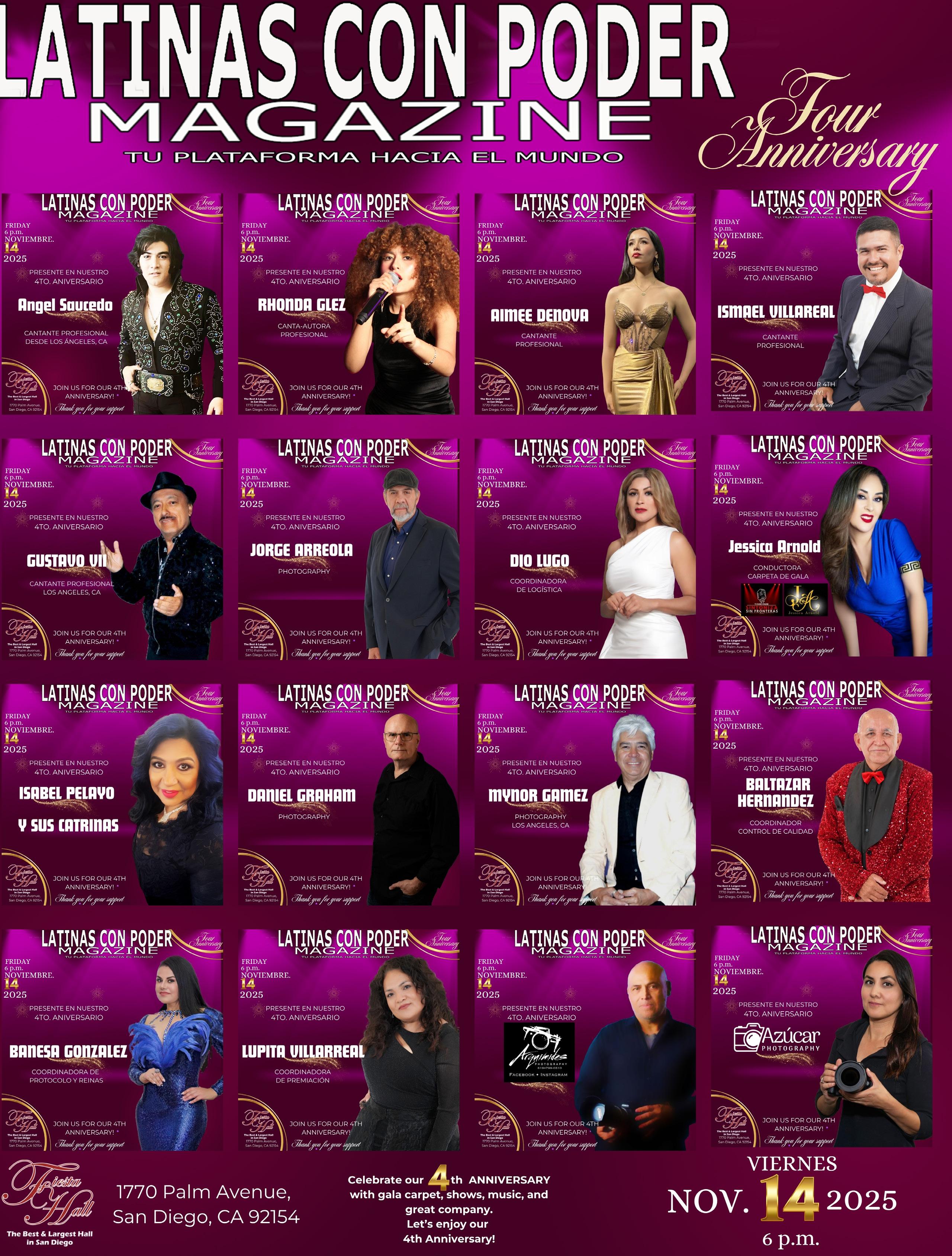Reciban un saludo muy afectuoso de parte de mi persona desde Los Ángeles, California. Es para mí un gran gusto estar siempre en contacto con todos ustedes a través de esta maravillosa Latinas con Poder Magazine. Como parte de los escritores y promotores culturales, siento una gran satisfacción de poder mantenerlos enterados de las actividades que se realizan en esta gran ciudad.