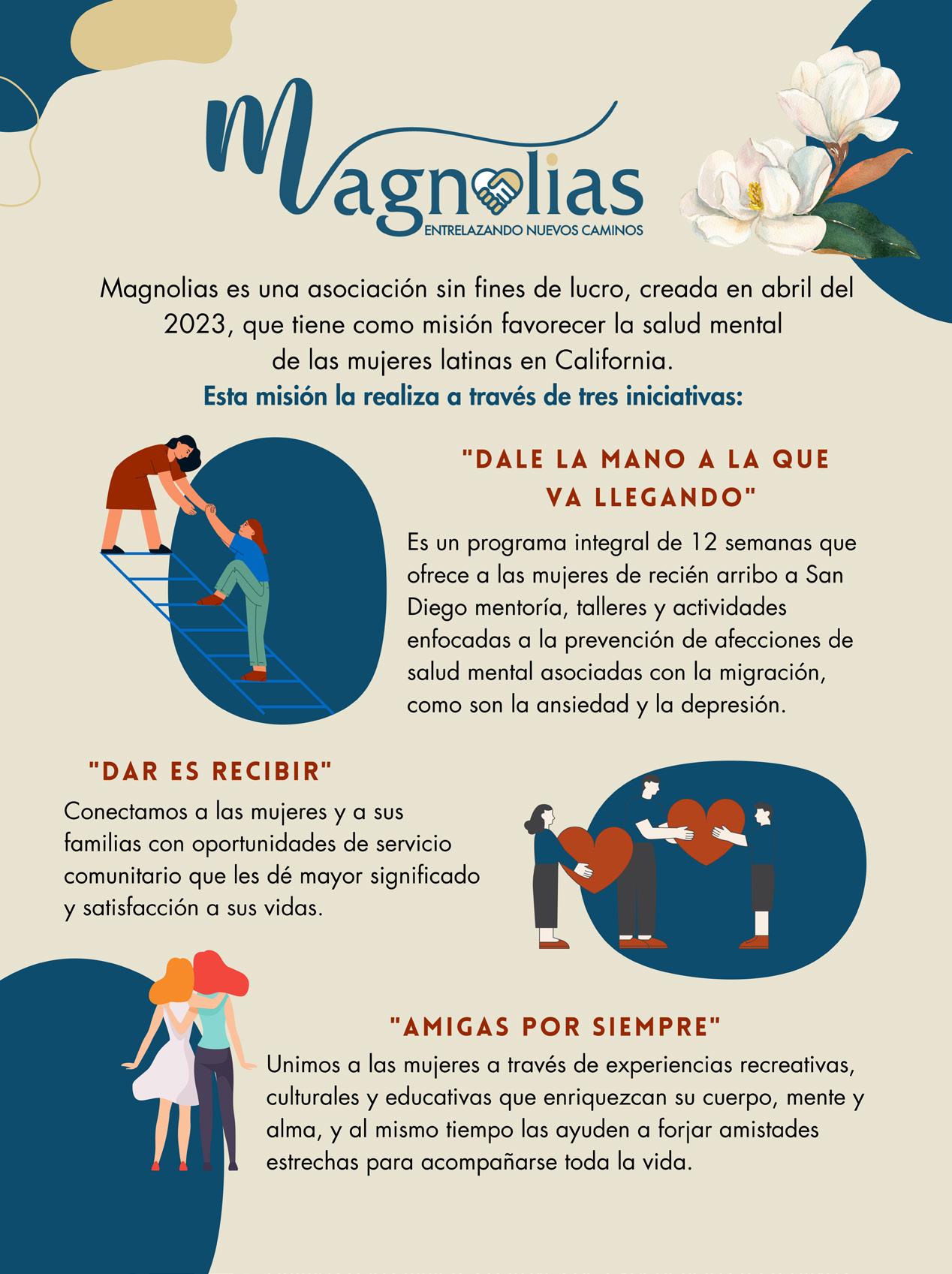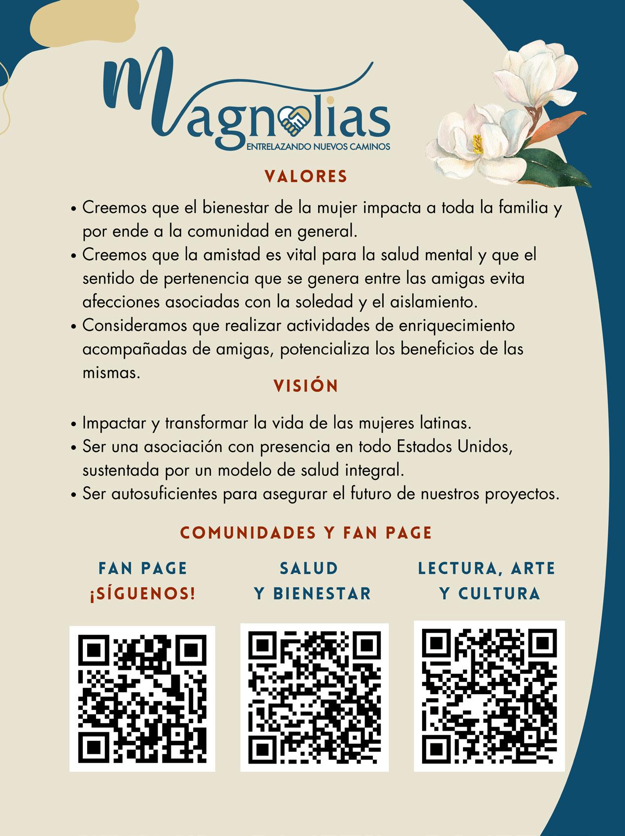 Felicitamos al grupo de Magnolias USA, organización sin fines de lucro, cuya fundadora es Edith Fuentes, por la 4a generación de su programa gratuito “Dale la mano a quien va llegando”. Este programa es para hispanas de recién arribo a los Estados Unidos.