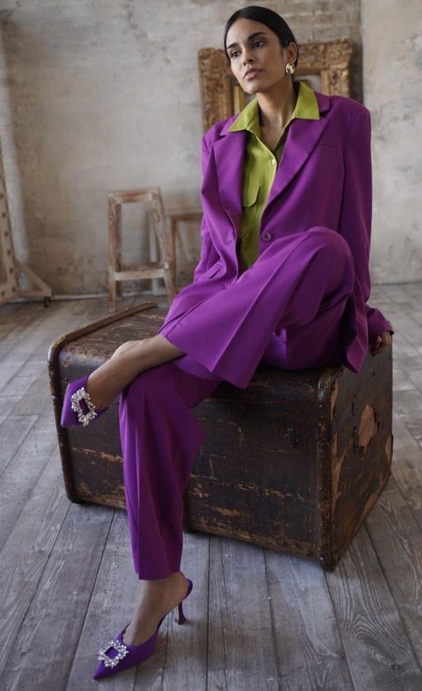 Puedes llevar el traje sastre oversized, esto es, una talla más grande de la que usas regularmente, puedes escoger estampados de cuadros o con lineas finas diplomáticas, en colores pastel como el rosa, lavanda y azul cielo, sin dejar atrás los colores brillantes como el morado, amarillo y el fucsia, colores metálicos com o el dorado y el plateado.