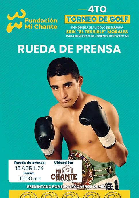 La organización no lucrativa Fundación Mi Chante quien apoya a los jóvenes deportistas mexicanos, organiza su 4to. torneo de golf, junto con Electrocarros de México,en Tijuana BC. En esta ocasión da homenaje al ídolo de Tijuana Erik “El Terrible” Morales. El torneo se llevará a cabo en Mayo 16. Fotos Angie Clement.