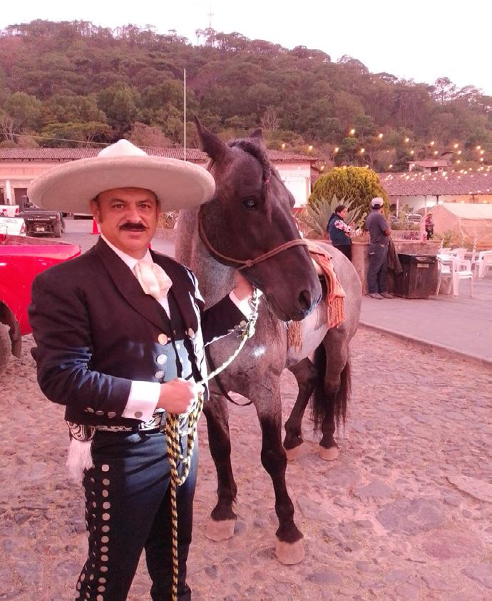 FOTO CORTESIA: JORGE TORRES. EL autor en traje de media gala acompañado por Don Javier Sánchez Sánchez luciendo un traje de gala dentro del Campo Charro Jalisco, casa de los multicampeones nacionales Charros de Jalisco. Guadalajara, Jal.