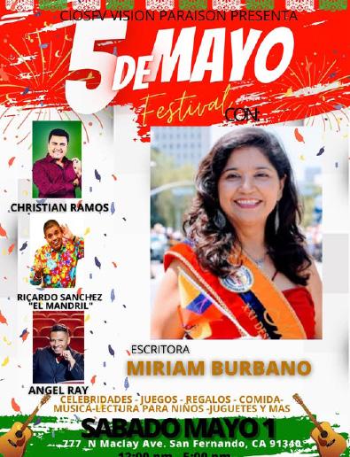 Sé que en muchas ciudades esta celebración es bastante grande y durante todo el mes seguiré con las entrevistas en mi programa, el TV Show Digital Desde Los Ángeles, en los estudios de Charanga TV, y también entrevistas con otros artistas en otros países a través de Facebook Live, hablando también de las celebraciones que se realizan dedicadas a las madres. No olviden seguirme en todas mis plataformas digitales donde comparto mucha información de otras actividades, siempre con el afán de mantener nuestra cultura viva. Aprovecho este medio para desearles un feliz Día de la Madre, que la pasen de lo mejor, pero sobre todo que reciban muchas bendiciones. Un abrazo fuerte para todos y mi agradecimiento por siempre recibir esta sección con mucho cariño, aprecio y admiración, el mismo que yo siento por cada uno de ustedes. ¡Hasta la próxima!