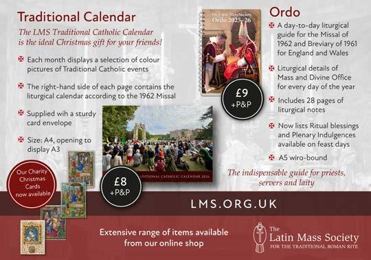 DISCLAIMER: Please note that the views expressed in this publication are not necessarily those of the Latin Mass Society or the Editorial Board. Great care is taken to credit photographs and seek permission before publishing, though this is not always possible. If you have a query regarding copyright, please contact the Editor. No part of this magazine may be reproduced without written permission.
