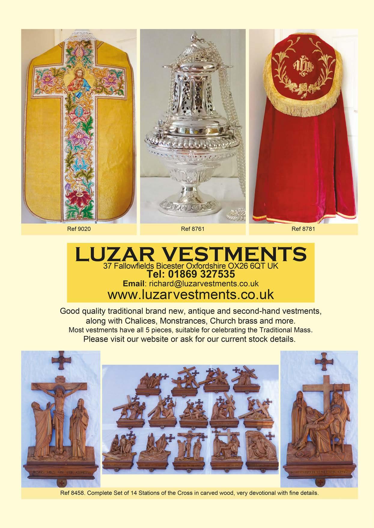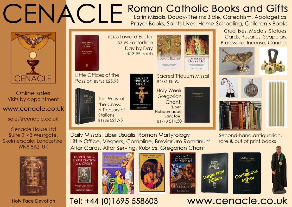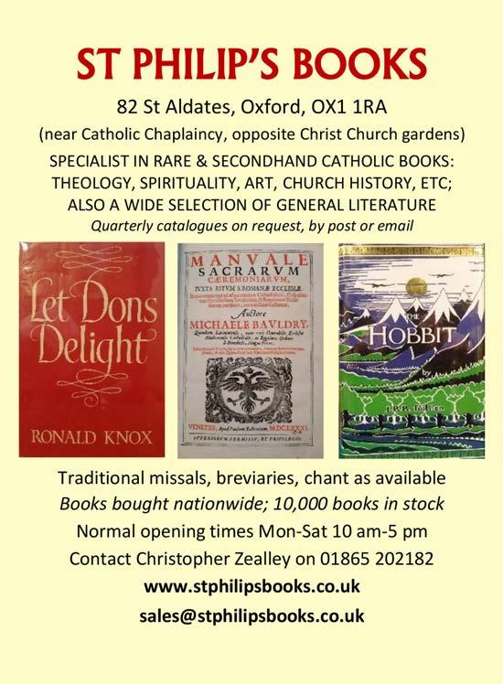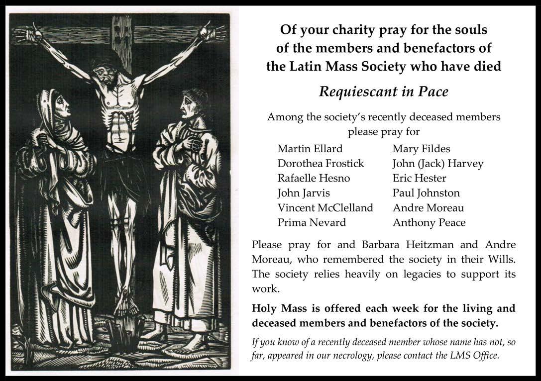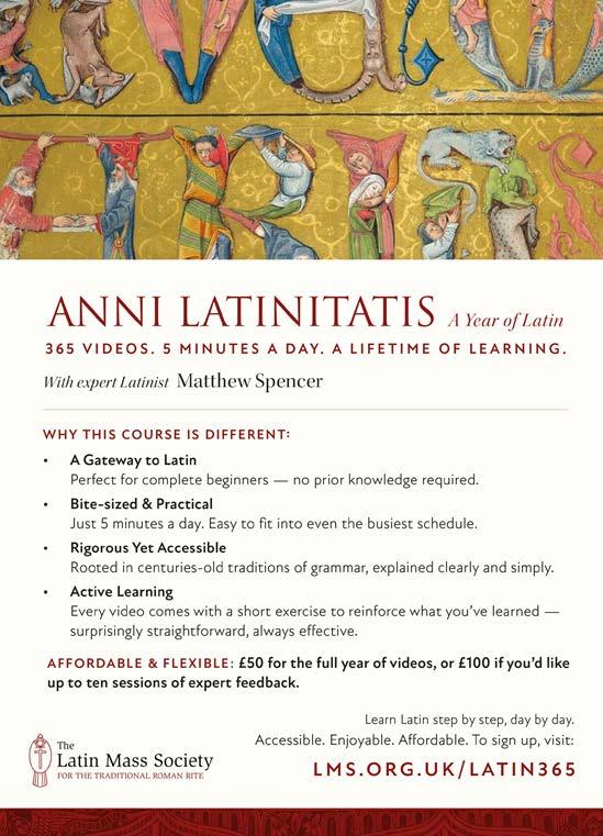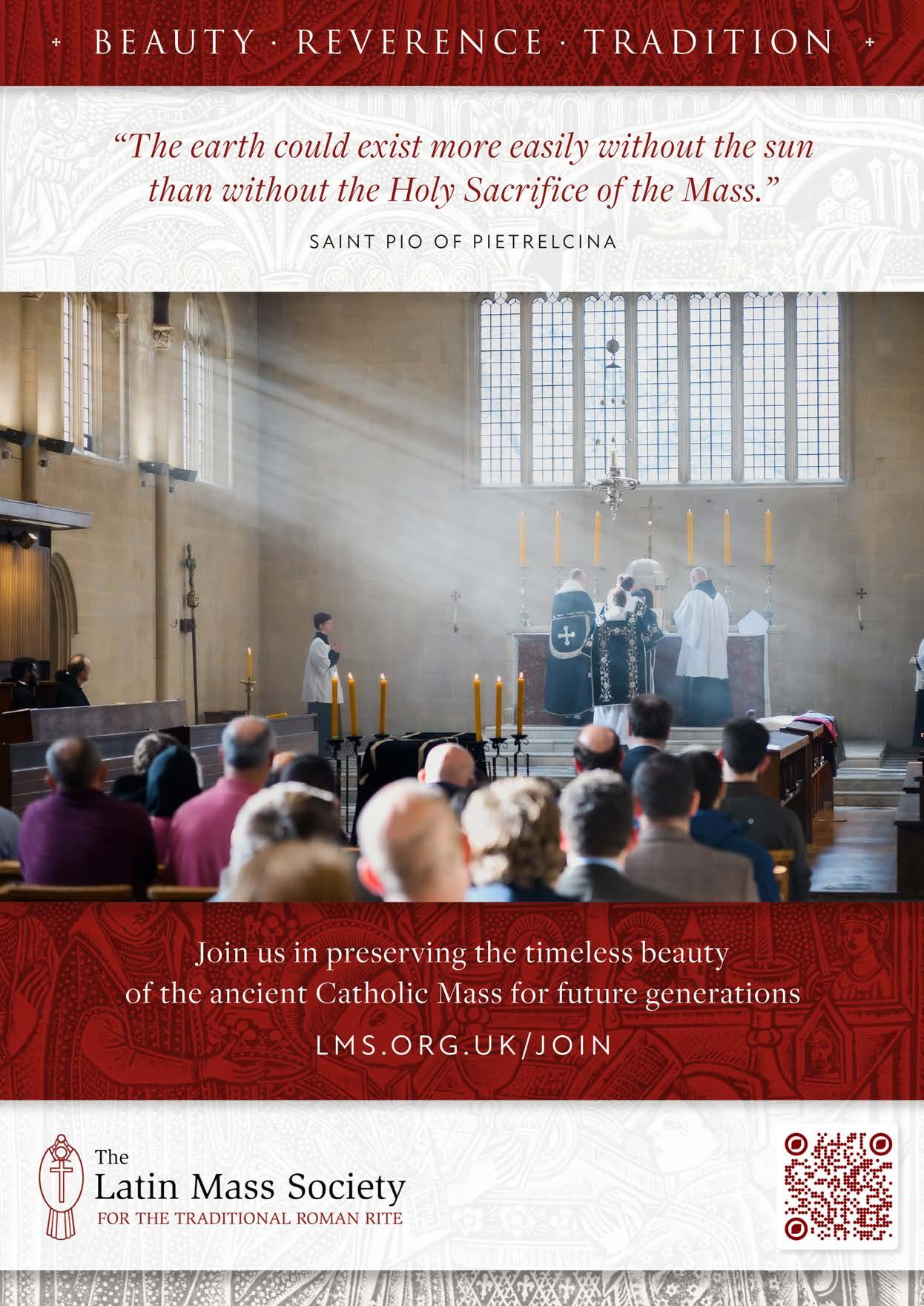 DISCLAIMER: Please note that the views expressed in this publication are not necessarily those of the Latin Mass Society or the Editorial Board. Great care is taken to credit photographs and seek permission before publishing, though this is not always possible. If you have a query regarding copyright, please contact the Editor. No part of this magazine may be reproduced without written permission.
