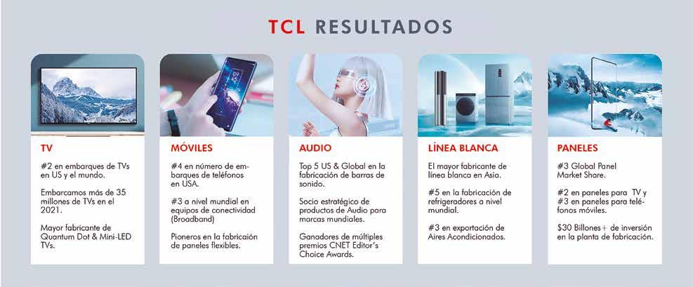 TCL es una marca global líder en paneles de visualización, televisores, línea blanca para el hogar y dispositivos móviles. Fundada en 1981, TCL cuenta con más de 120,000 empleados, opera 42 centros de fabricación e Investigación y Desarrollo en todo el mundo y tiene productos y servicios en más de 160 países.