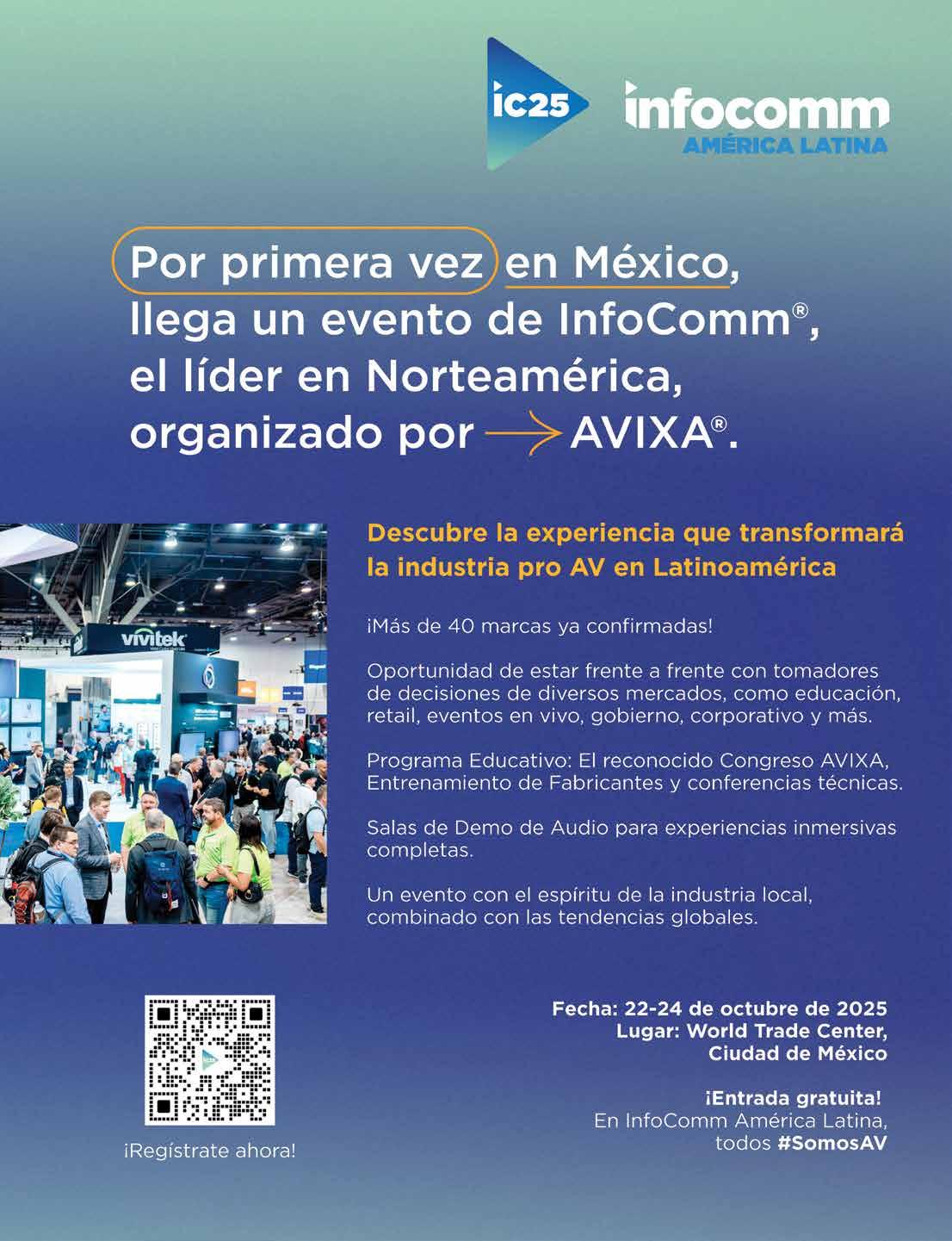 La cita ahora es en Ciudad de México del 22 al 24 de octubre, para InfoComm América Latina. Pero la conversación continúa desde ya: tecnología, IA y experiencias humanas están reescribiendo el futuro audiovisual.