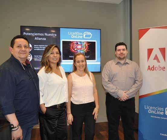 Daniel Yesuron, Preventa Tech Regional LOL, Alejandra Orsi, Product Manager LOL, Jeisy Rodríguez, SLAM Manager Channel Sales y Bautista Hoyos, Gerente de Canales de ADOBE
