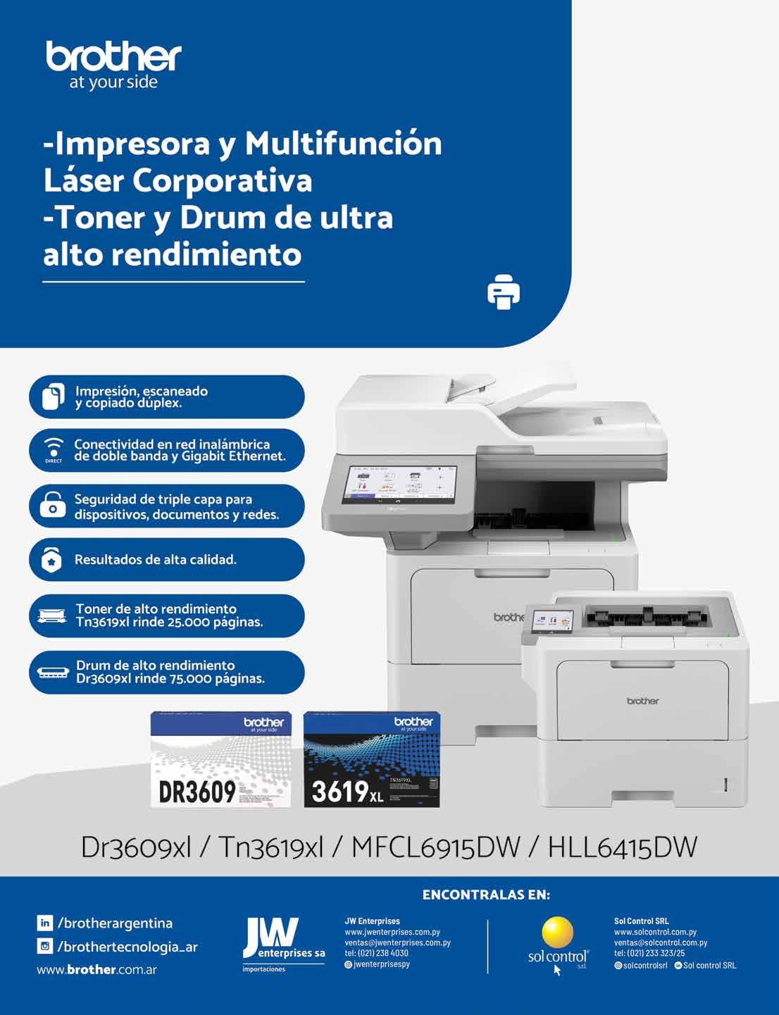 JW Enterprises, distribuidor oficial y centro de servicio autorizado de Brother en Paraguay, presentó su nueva línea de equipos multifuncionales y de impresión diseñados para responder a las crecientes demandas de velocidad, eficiencia y conectividad en el entorno corporativo. Los modelos destacados incluyen las multifuncionales DCP-L5610DN y DCP-L5660DN, así como las impresoras HL-L5210DN y HL-L5210DW.