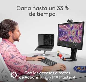 Otra novedad es Actions Ring, una función disponible en el software Logi Options+ que ofrece atajos personalizables para cada aplicación. De esta forma, se pueden crear comandos específicos en programas como Photoshop o Excel y ahorrar hasta un 33% de tiempo, reduciendo además los movimientos repetitivos del mouse en un 63% según datos de Logitech