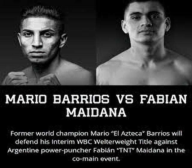 The 12-round co-main event will see Mario “El Azteca” Barrios make the first defense of his Interim WBC Welterweight Title against Argen na’s Fabián “TNT” Maidana, the younger brother of legendary ac on fighter Marcos who will look to add to his family legacy in his first world tle opportunity.