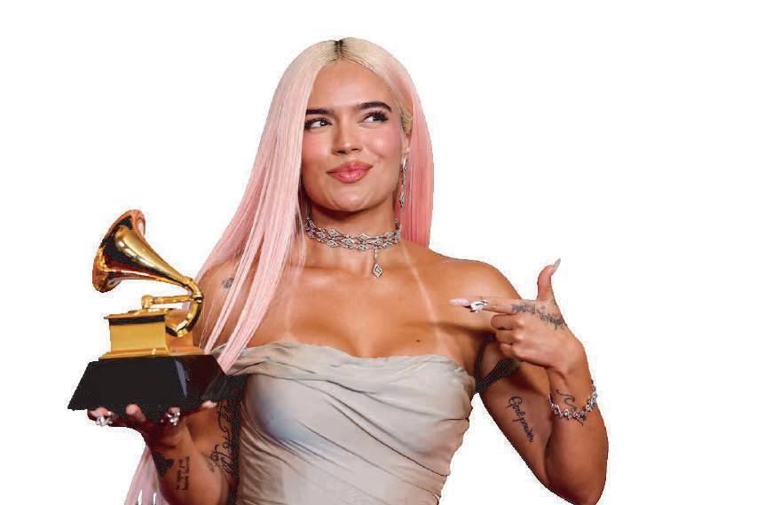 On a personal level, the superstar tells me, “it changed my life, brother…. I made the beat in Venezuela and recorded it in Miami three months a�ter arriving. I never really had the chance to build a name in Venezuela. And honestly, Venezuela is di�ficult— the circuits are very closed. There’s very little industry, and it’s hard to get an opportunity to break in. I respect that and understand that’s how things are. But everything happened here in the United States. Me Rehúso started traveling—it completely turned my life around, 180 degrees—and now we’re here.”