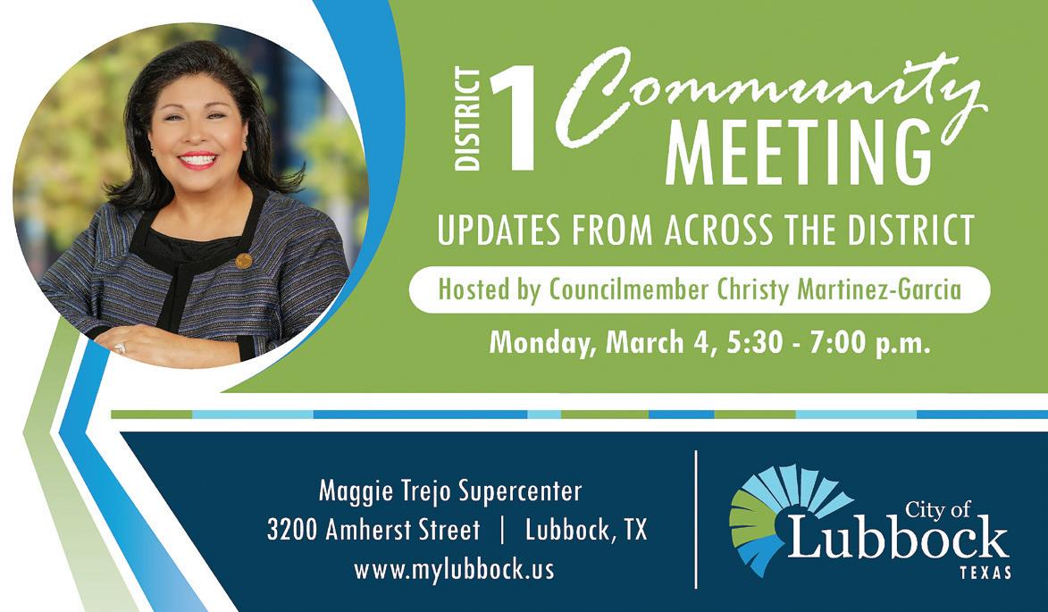 NORTH LUBBOCK NEIGHBORHOOD ASSOCIATION will resume its monthly meeting Monday March 18, 2024, 5:30 PM at Maggie Trejo Supercenter, 3200 Amherst St. All are invited.