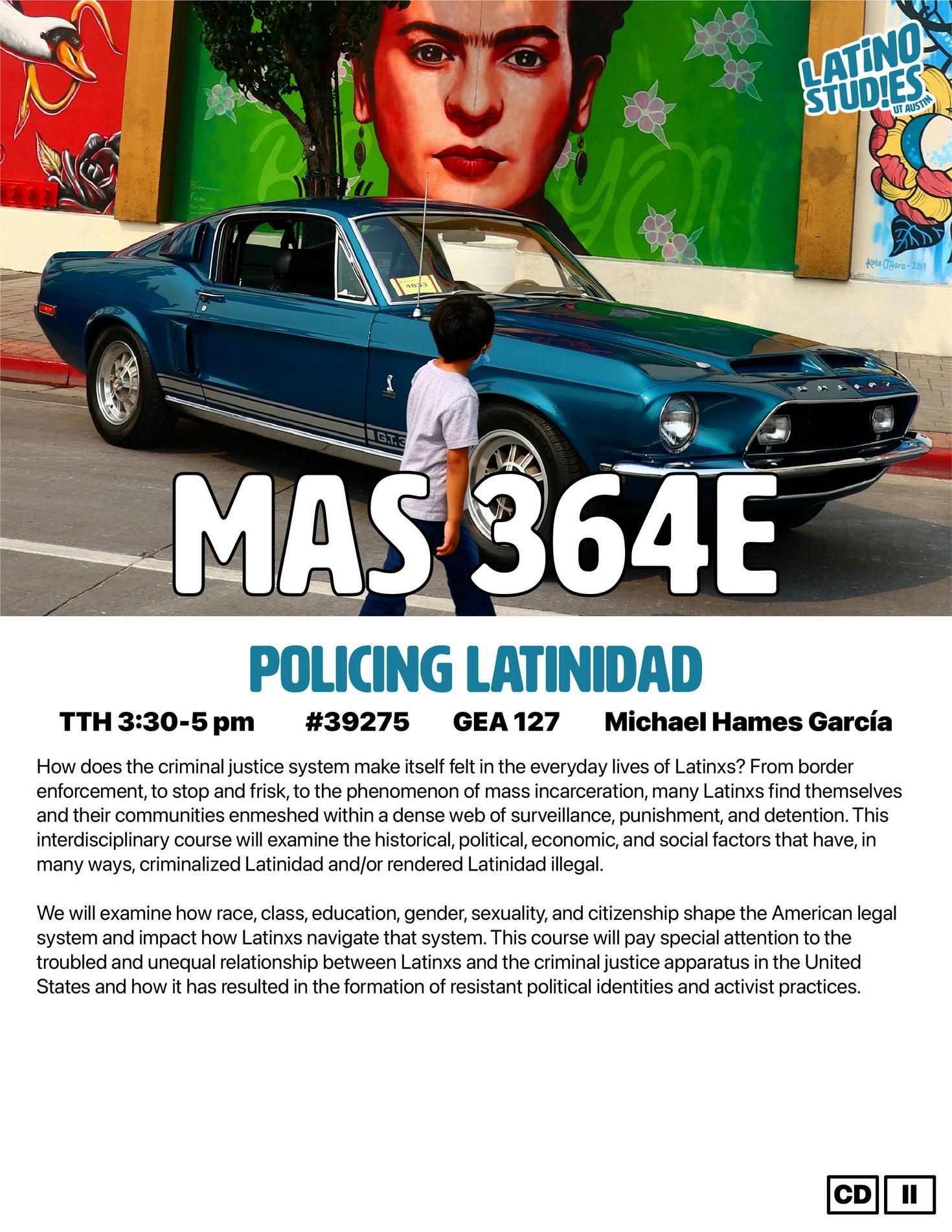 This course takes a community cultural wealth approach to the diversity of Mexican American and Latina/x/o experiences. Considering broad themes, such as “Home: Educación del Corazón,” “Borders: Musical Migrations,” “Solidarity: African American and Latinx Shared Histories,” and, finally, “Design: Educating for Restorative Justice,” this course introduces foundational concepts in Mexican American & Latina/x/o Studies while inviting students to draw the connections and nurture the curiosities that most interest them and relate to their own lives and experiences.