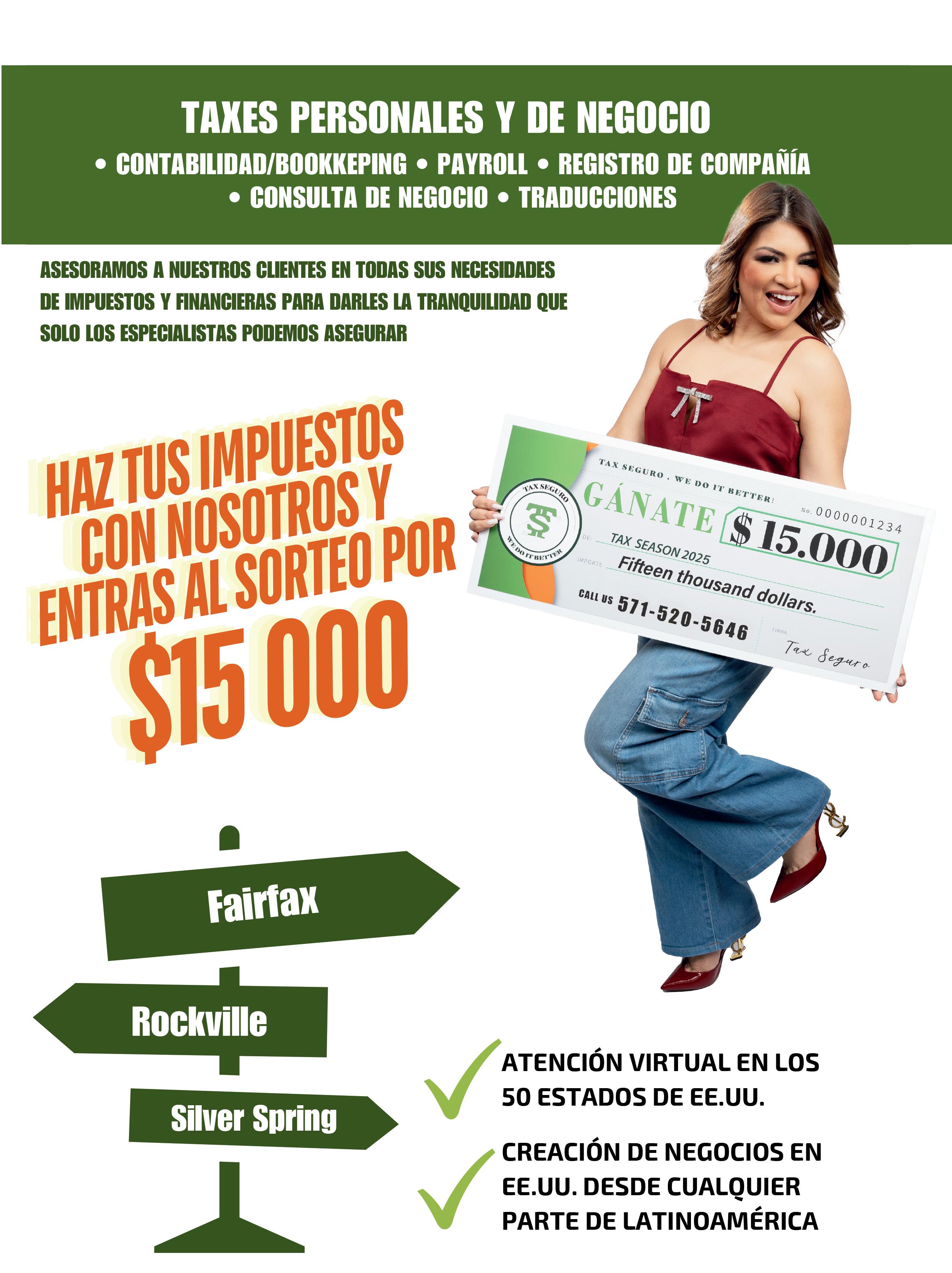 Para quienes buscan asistencia profesional y un servicio de confianza, Tax Seguro cuenta con 3 sedes, en Fairfax, Maryland y Silver Spring, Además ofrece atención virtual en los 50 estados de EE.UU., asegurando que cualquier persona, sin importar su ubicación, pueda acceder a servicios fiscales de calidad. Asimismo, la empresa facilita la creación de negocios desde Latinoamérica.