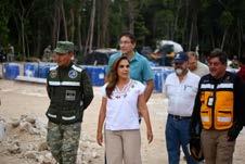 Acompañada de Margarito Molina, director del INAH Quintana Roo; Manuel Pérez Rivas, arqueólogo responsable del salvamento; y del coronel ingeniero constructor, Mario Acevedo Hernández, la gobernadora Mara Lezama recorrió la zona donde estará este nuevo Parque Arqueológico.