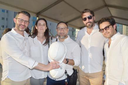 Jorge Pérez, presidente y socio fundador de Related Group; Roberto Kelleher, CEO y socio fundador de Inmobilia; Antonio Elosúa, presidente del comité ejecutivo de U-Calli y Carlos Ancira, socio de Related México, presidieron la ceremonia de colocación de la primera piedra de SLS Bahía Beach, equipados con palas y cascos de construcción.