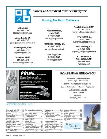 Society of Accredited Marine Surveyors® Serving Northern California Al Blair, SA 415.456.3154 blairsurvey@msn.com Jesse Brody, SA 415.342.0757 jesse@baymarinesurvey.com Alan Hugenot, AMS® 415.531.6172 captainhugenot.com Tom List, AMS 415.332.5478 listmarine@yahoo.com ®