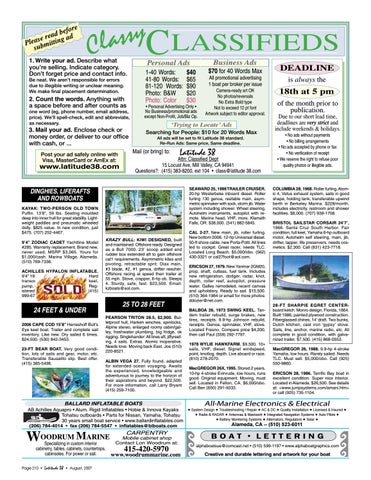 Attn: Classified Dept 15 Locust Ave, Mill Valley, CA 94941 Questions?: (415) 383-8200, ext 104 • class@latitude 38.com