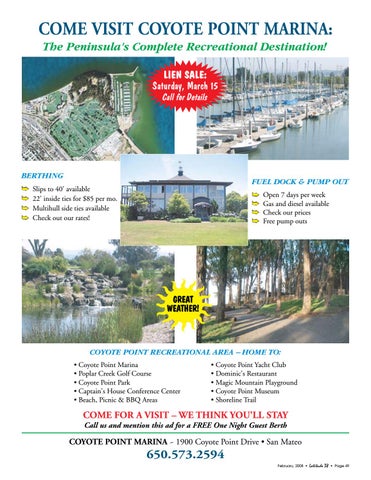 COME VISIT COYOTE POINT MARINA: The Peninsula's Complete Recreational Destination! LIEN SALE: Saturday, March 15 Call for Details