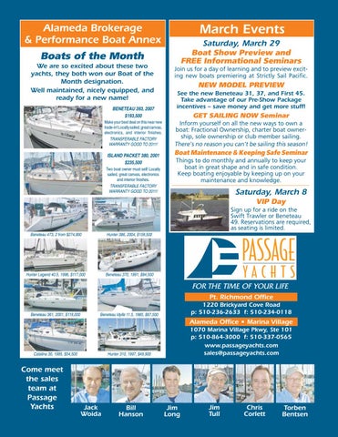 1070 Marina Village Pkwy, Ste 101 p: 510-864-3000 f: 510-337-0565 www.passageyachts.com sales@passageyachts.com