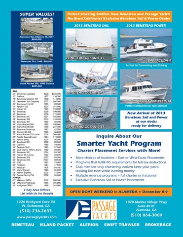 Perfect Stocking Stuffers from Beneteau and Passage Yachts Northern California’s Exclusive Beneteau Sail & Power Dealer 2013 BENETEAU SAIL