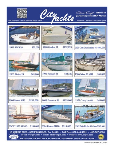 10 MARINA BLVD., SAN FRANCISCO, CA 94123 • Toll Free: 877-444-5091 • 415-567-8880 social: @cityyachts • email: nick@citysf.com • website: www.citysf.com PLEASE VISIT OUR FUEL DOCK AT GASHOUSE COVE MARINA • OPEN 7 DAYS A WEEK September, 2020 •