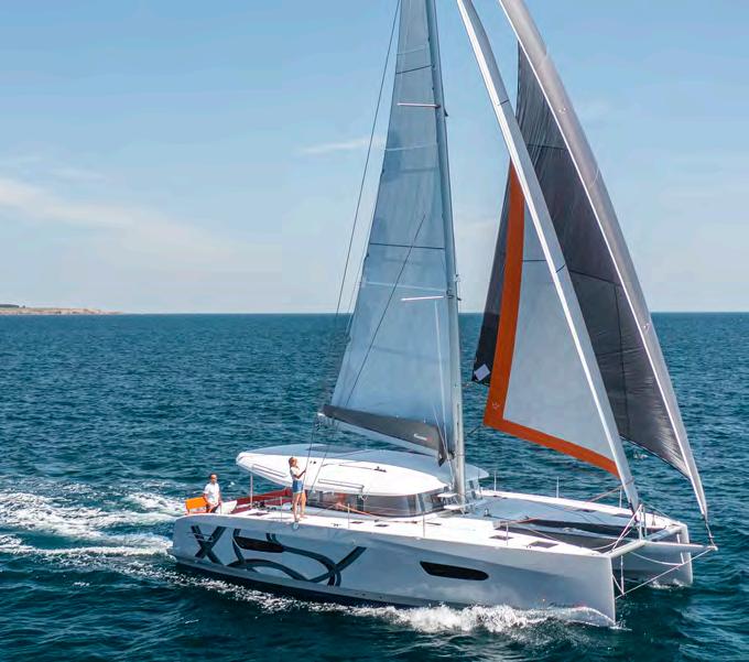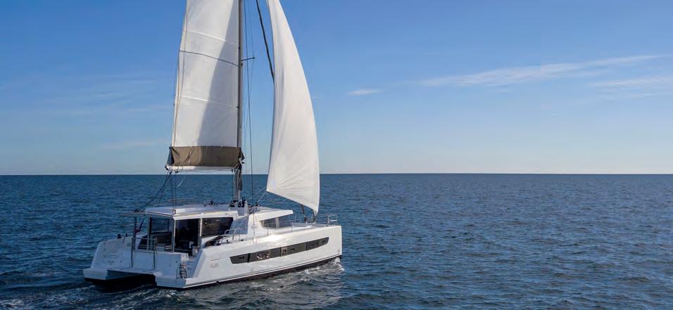 Allures cruising yachts feature aluminum hulls, berglass cockpits and cabin tops, centerboards, and twin rudders. The bene ts extend beyond their strength, shoal draft, and ability to dry out. Downwind sailing performance and comfort are greatly improved with the centerboard raised up into a trunk. Timeless Odyssey was sailed around Europe and to the Caribbean by her owners. She has a full kit of blue water cruising gear, including solar, wind, and tow generator, Hydrovane steering, and everything needed to head o across oceans. This is an excellent choice for a family or couple wanting to cruise the Bahamas and beyond. Think of the cruising grounds available with the 3½ foot (1.05m) draft!