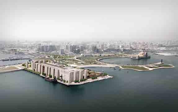 Facing page: Shouq Al Mana (b. 1995, Qatar) Egal, 2022 Stainless steel, Various dimensions between 3.5m - 4.5m high (5 pieces) Lusail Marina Photo copyright Iwan Baan. Courtesy of Qatar Museums