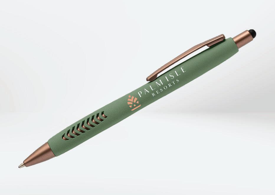 Recycled Aluminum Stylus Gel Pen • Deco Methods: Mirror Laser Engraved, 2"w x 0.295"h | Full Color Inkjet, 2.283"w x 0.276"h • MOQ: 100 • Production: As quickly as 5 days As low as $2.69 (c)