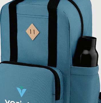 rPET Comfort Strapped Backpack - 4.7 gal • Deco Methods: Silkscreen, 4.5"w x 4.5"h | Heat Transfer, 4.5"w x 4.5"h • MOQ: 50