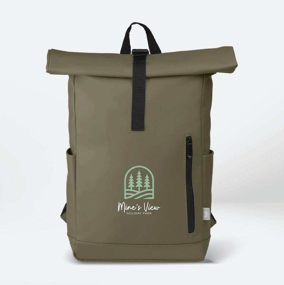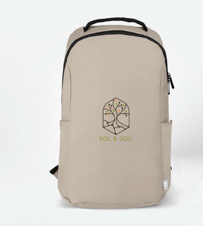 rPET Gold-Zip Backpack - 20L • Deco Methods: Silkscreen, 6"w x 4"h | Heat Transfer, 6"w x 4"h • MOQ: 20