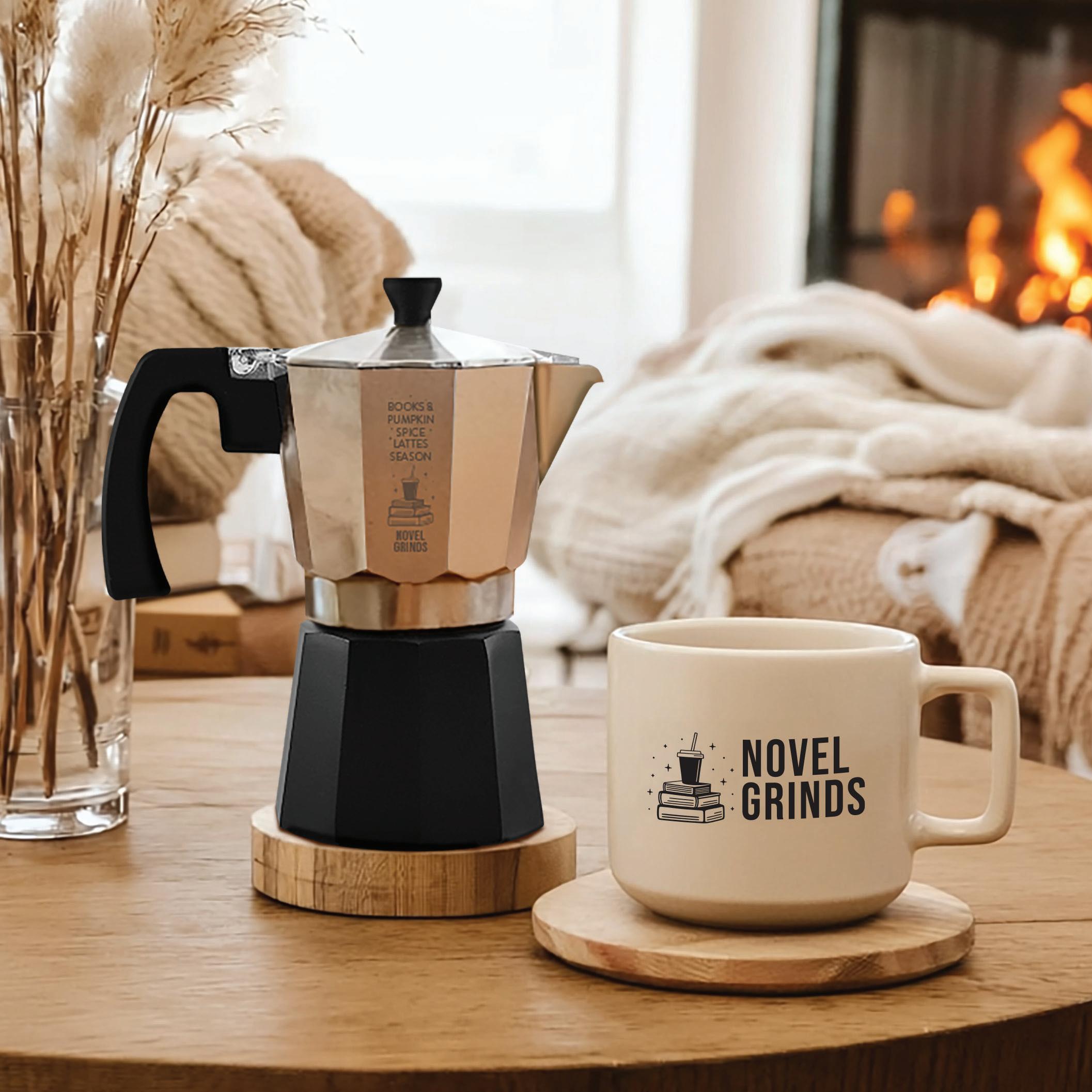 Aluminum Stovetop Espresso Maker - 6-cup • Deco Method: Laser Engraved, 2"w x 0.6"h • MOQ: 12 • Production: As quickly as 5 days • As low as $39.99 (c)
