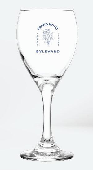 Wine Glass • Deco Methods: Silkscreen, 2.25"w x 1.5"h | Full Color Inkjet, 2.25"w x 1.5"h MOQ: 72 • Production: As quickly as 5 days