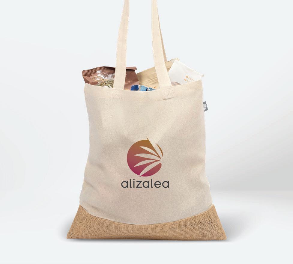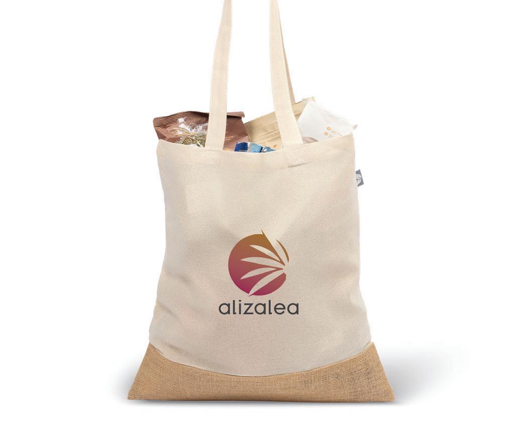 5oz. Recycled Cotton Blend with Jute • Deco Methods: Silkscreen, 8"w x 6"h | Heat Transfer, 8"w x 6"h MOQ: 100 • Production: As quickly as 5 days As low as $4.47 (c)