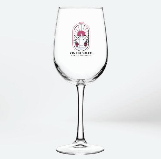 Wine Glass • Deco Methods: Silkscreen, 2.25"w x 1.5"h | Full Color Inkjet, 2.25"w x 1.5"h MOQ: 72 • Production: As quickly as 5 days As low as $4.14 (c)