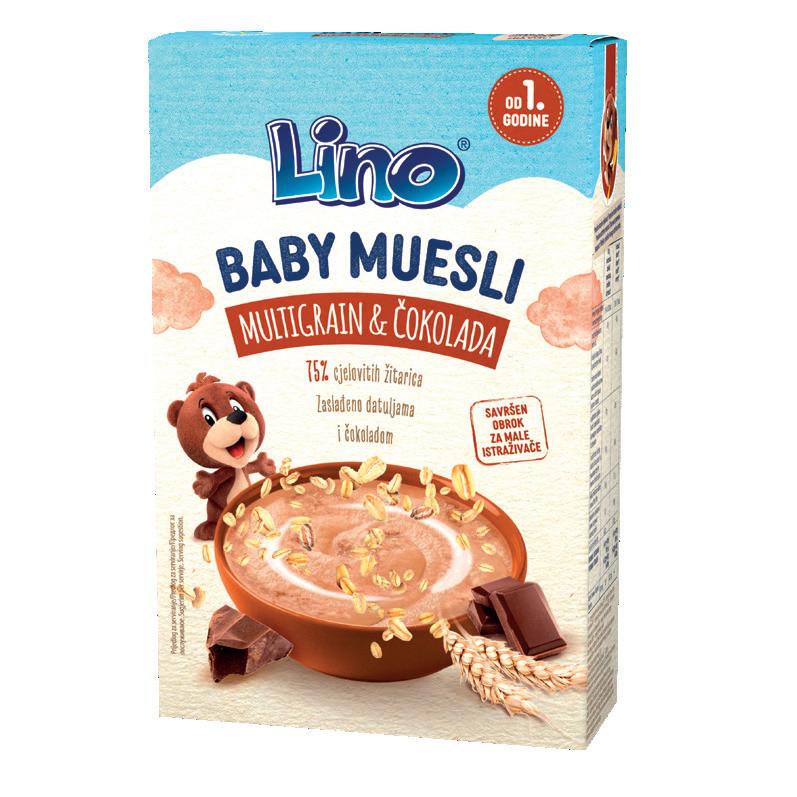 Zaslađeni datuljama i bogati cjelovitim žitaricama i hrskavim komadićima, Lino Baby Muesli čine svaki obrok zdravom pustolovinom! Jednostavno se pripremaju s mlijekom i predstavljaju savršeno nutritivno izbalansiran obrok za male istraživače. Uz Lino Baby Muesli, svaki je zalogaj korak prema zdravim navikama za cijeli život.
