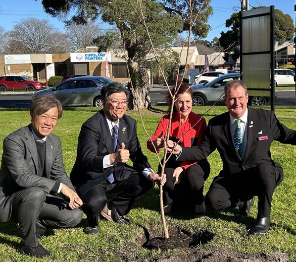 The Sister City relationship was solidified through a commemorative tree planting. Together with Takasago Mayor, Tatsuyoshi Tokura, a Prunus Mt Fuji – Japanese flowering cherry tree was planted. The tree was planted on Breed Street in Traralgon and signifies the important relationship between our two cities.