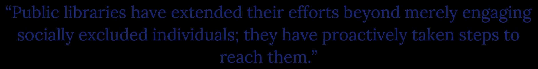 My experience in public libraries has underscored the importance of fostering inclusivity, thereby enhancing my interpersonal skills. Equity, as a core value of librarianship, highlights the necessity for libraries to reach individuals from all segments of society. Throughout my tenure, public libraries have extended their efforts beyond merely engaging socially excluded individuals; they have proactively taken steps to reach them Initiatives such as visiting homebound persons and customizing programs and software for those with visual