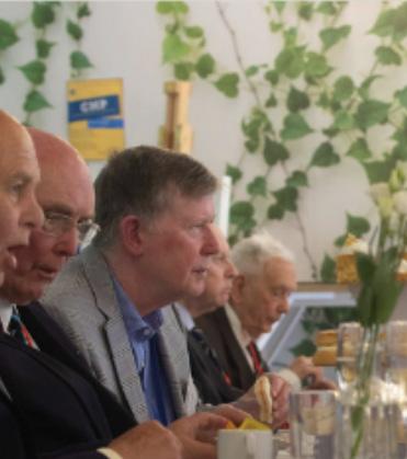 Ron PHILLIPS (1957) celebrated his 85th Birthday, with a special Latymer mug as a present! Here he is pictured (L) alongside David GODFREY (1964).