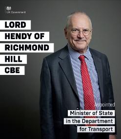 Lord Peter HENDY (1971) has been appointed Minister of State in the Department for Transport.