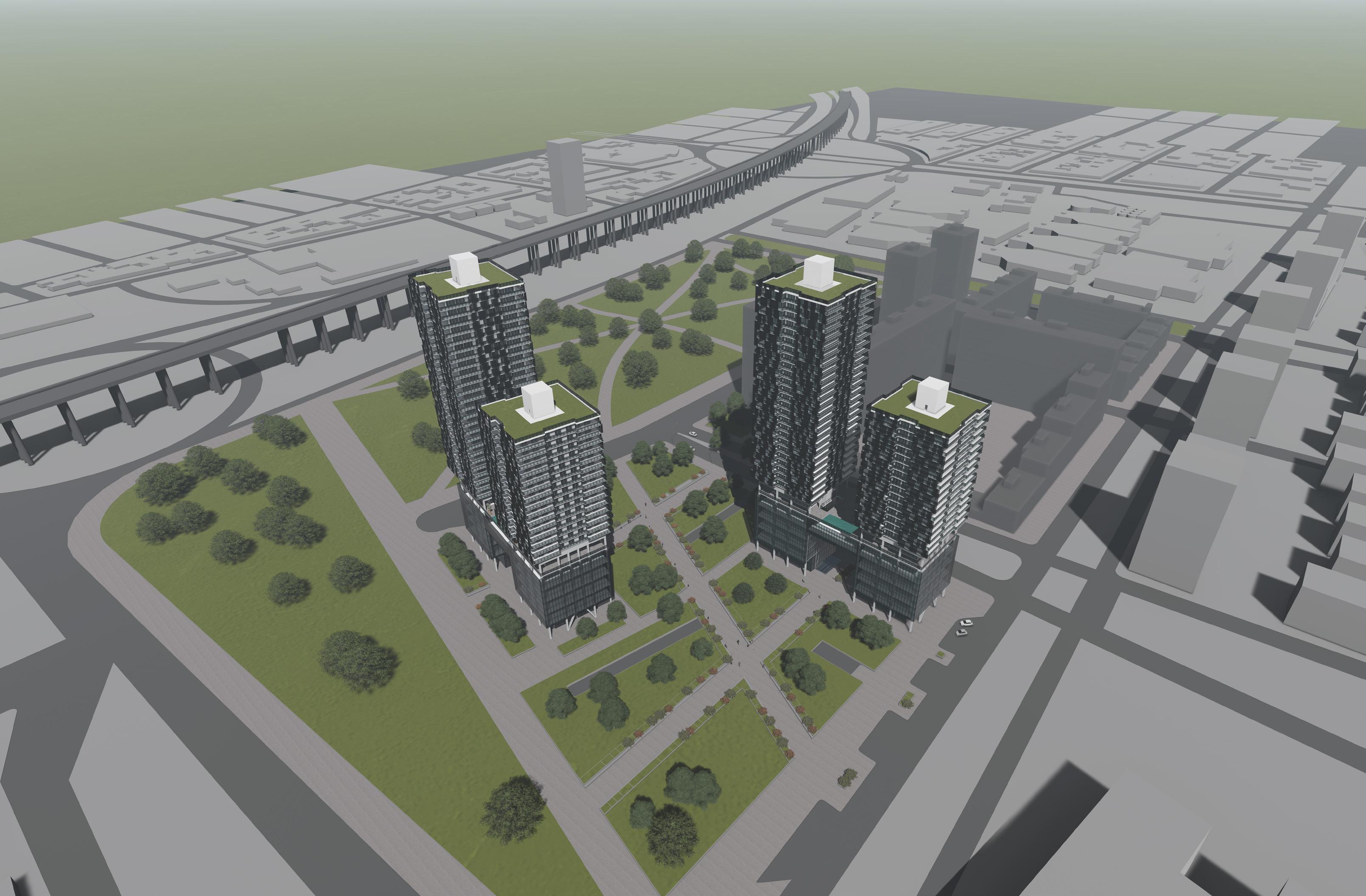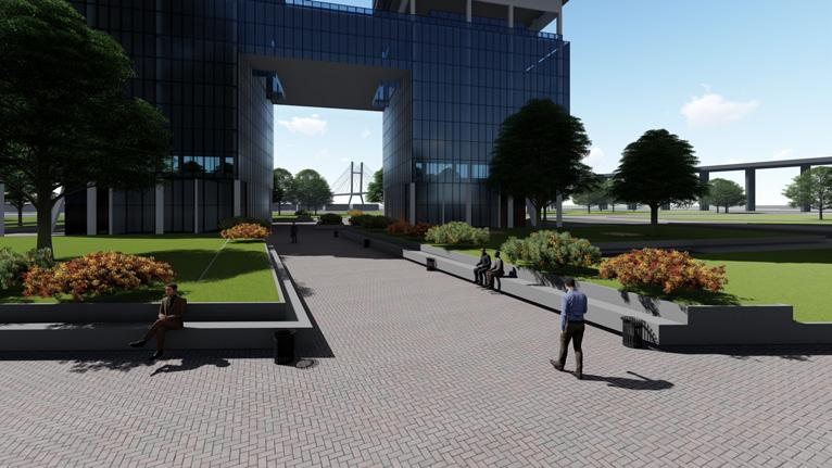Se propone un Master Plan en la ciudad de Granadero Baigorria, sobre el límite norte con Rosario. Se trata de un sitio estratégico don de se produce la transición entre ambas ciudades a través del Puente Rosario – Victoria, el Parque de la Cabecera y el Parque de la Biodiver sidad. Estos son los componentes que permiten configurar la proyec ción de un nuevo frente urbano para la ciudad. Se propusieron cuatro torres para albergar el programa. La planta baja resulta una extensión de la explana da pública, con locales comerciales que incentivan el paso de las perso nas. Luego, dentro de la caja vidria da, suceden las oficinas privadas de planta libre con distribuciones flexibles. Por último, el programa re sidencial, que mediante una terraza compartida articula ambas torres. Este mismo, desde planta baja, ge nera que los usuarios atraviesen el