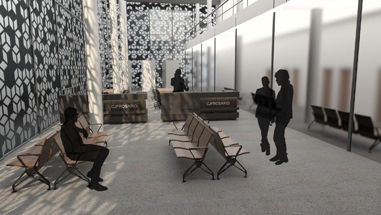 puede apreciar el río. En cuanto a la organización del edificio se lo dividió en cuatro Fueros para ordenar de manera específica sus distintas funciones. A estos se adiciona un quinto pabellón, donde se dispusieron los espacios públicos, que pueden funcionar en horarios independientes. Los distintos pabellones son articulados por la tira central, la cual presenta los espacios comunes judiciales y actúa como un elemento distribuidor.