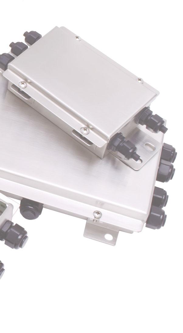 AISI 304 stainless steel or ABS junction boxes, including equalization boards or parallel connection boards, to connect from 1 to 4 or from 5 to 8 load cells.