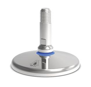 Mounting kit provided with adjustable upper plate in AISI 304 stainless steel; constraint against lateral forces and anti-tilt by stainless steel self-centering joint foot; adjustable height.
