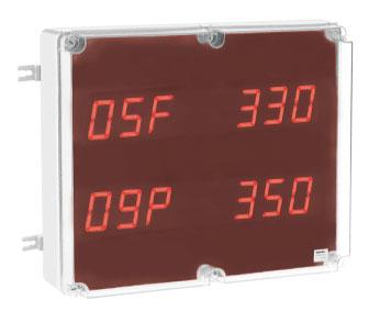 Remote display with big digits display, suitable for wall mounting. Dot-matrix alphanumeric display, 5-digit (100 mm height). Plastic box.